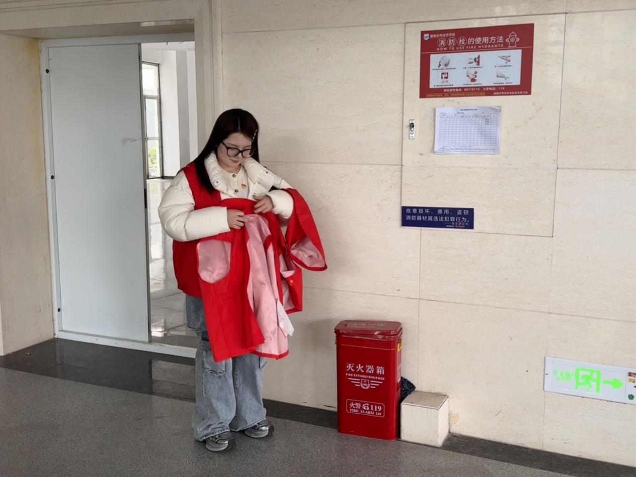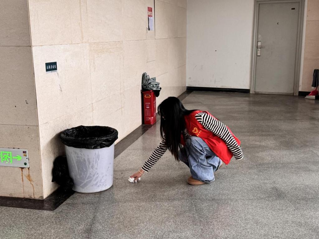 各学生党支部副书记迅速行动,围绕服务同学、营造良好校园环境的目标,从多维度积极作出承诺。他们表示,将充分发挥模范带头作用,定期对党员责任区进行细致排查,针对电路老化、杂物堆积等安全隐患第一时间整改处理。同时,常态化开展清洁行动,主动清理卫生死角,引导学生养成良好卫生习惯,以实际行动践行党员担当,致力于打造清洁、美丽的校园环境,为同学们的学习生活筑牢安全、健康的基石。副书记们以身作则,深入责任区开展实践。清扫教学楼角落积尘,擦拭宣传栏与楼梯扶手,整理志愿服务红马甲……从走廊到教室,从公共区域到生活细节,他们用双手让校园焕发新貌,让“红马甲”成为随时待发的温暖符号。