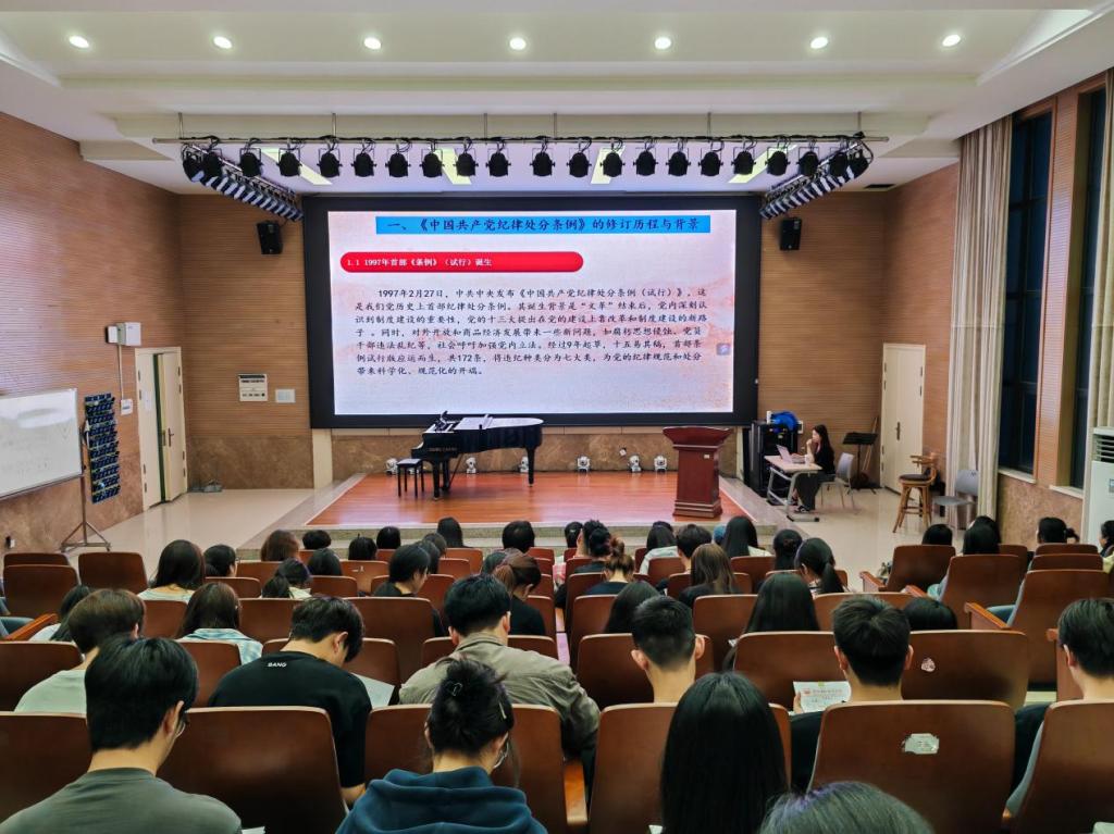 课堂上,廖诗华书记介绍了《中国共产党纪律处分条例》的修订历程与背景。《中国共产党纪律处分条例》(以下简称《条例》)于2023年12月8日由中共中央政治局会议审议通过,并于2023年12月19日由中共中央正式发布施行。这是党的十八大以来,党中央对《条例》的第三次修订,廖书记鼓励全体发展对象从党章出发,坚持严的基调,坚持问题导向和目标导向相结合,与时俱进完善纪律规范,进一步严明政治纪律和政治规矩,带动各项纪律全面从严,为以中国式现代化全面推进强国建设、民族复兴伟业筑牢纪律根基,以一名合格共产党员的标准要求自己。
