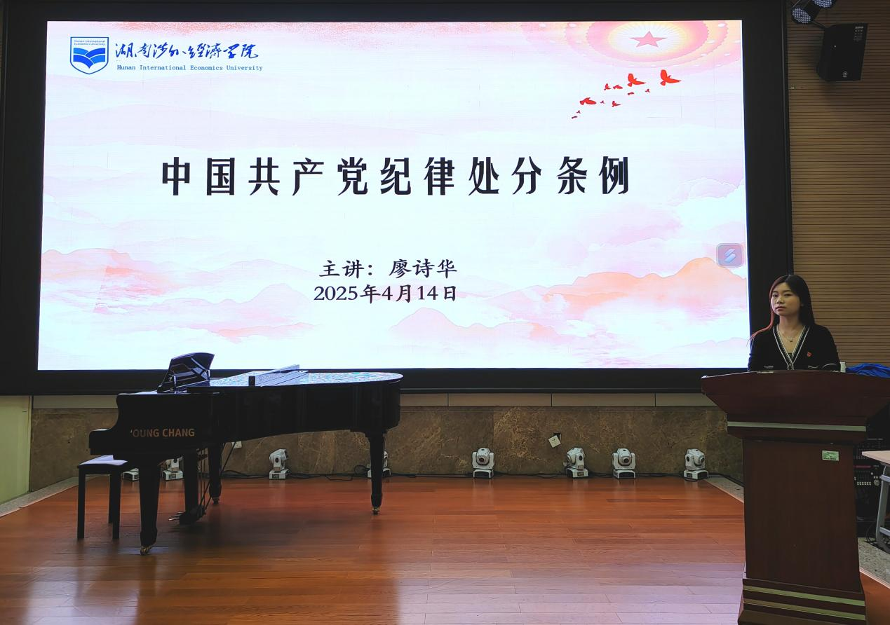 2025年4月14日19:00,太阳成集团tyc7111组织开展发展对象第三次党课培训。此次培训以“中国共产党纪律处分条例(自2023年12月19日起施行)”为主题,由太阳成集团tyc7111音乐学学生第二党支部廖诗华书记主持并讲授。