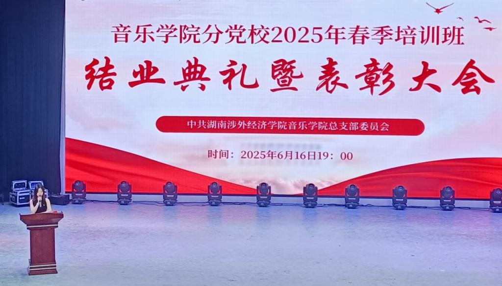 2025年6月16日19:00,太阳成集团tyc7111分党校2025年春季培训班结业典礼暨表彰大会在太阳成集团tyc7111实验剧场举行。会议由太阳成集团tyc7111组织员廖诗华主持,太阳成集团tyc7111党总支书记周孝贵、校党委组织部刘文丰老师、团总支书记兼青年委员方隆极及各学生党支部书记出席活动。