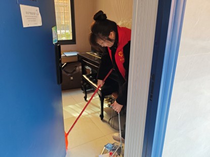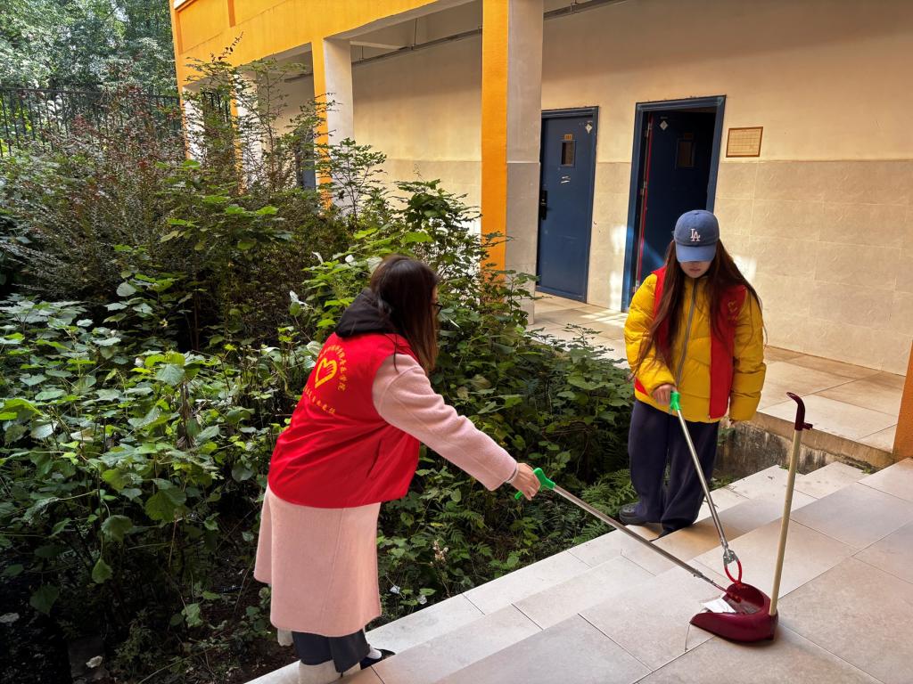 随后,志愿者们延伸服务范围,对琴房周边区域进行细致清理。大家俯身拾捡草丛中的纸屑、塑料瓶等杂物,特别是对隐蔽处的烟头进行彻底清除,确保环境整洁无死角。在窗台区域,志愿者们还对志愿者马甲进行整理叠放,进一步优化物品摆放秩序。