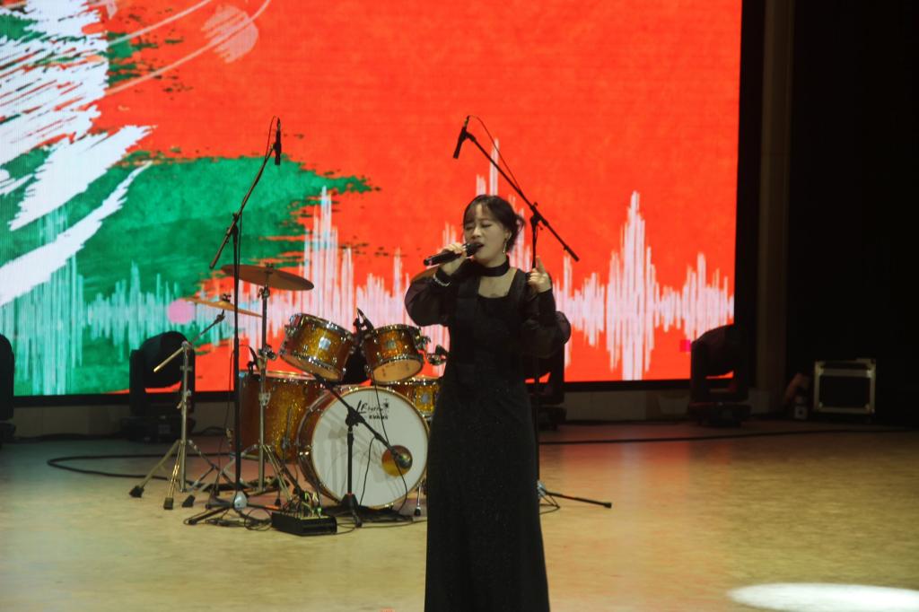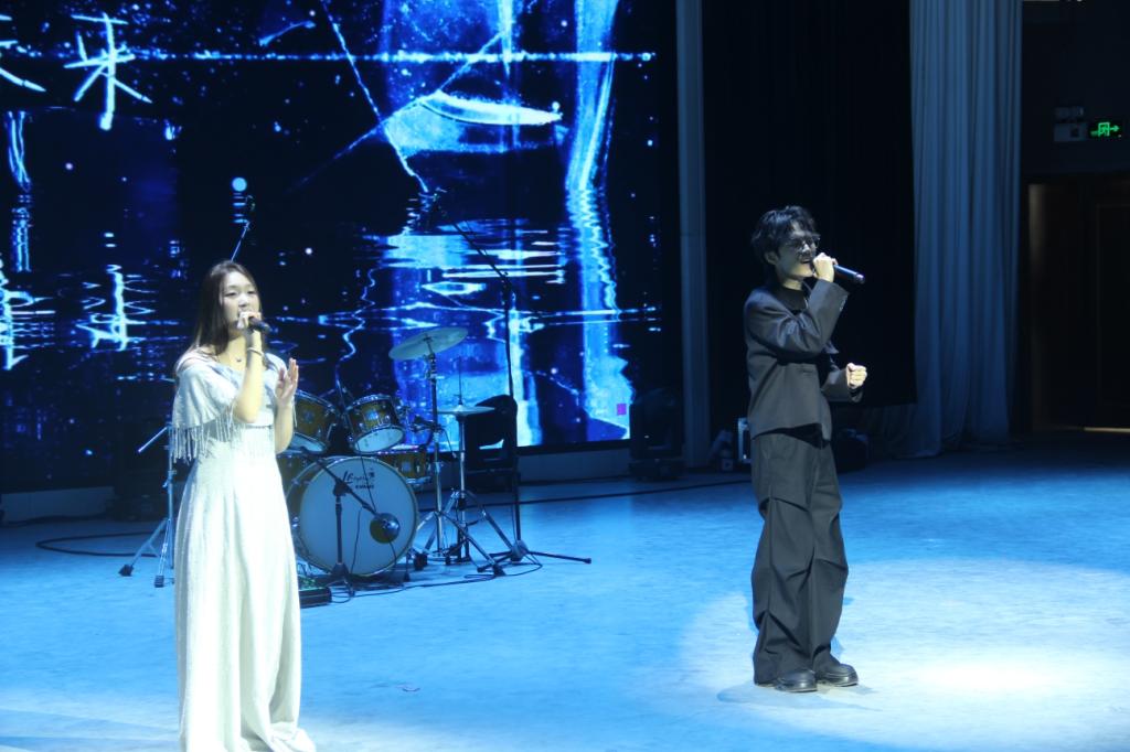 中段节目风格多元而富有个性。麻懿的原创《别离曲》旋律流畅、情感真挚,尽显创作活力;曾诗怡、李瑶等同学以唱跳《SHEESH》燃动全场,明快的节奏与整齐的舞步洋溢着蓬勃青春气息;曾梓洋与李诗雨则深情演绎《不该》,以细腻声线诠释遗憾、释怀与成长,传递直面情感、勇敢前行的力量。整场演出由抒情渐入热烈,张弛有度,扣人心弦。