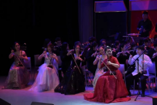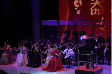一首古筝重奏描绘了春到天山时明媚的一派春光和新疆人民载歌载舞的场面。