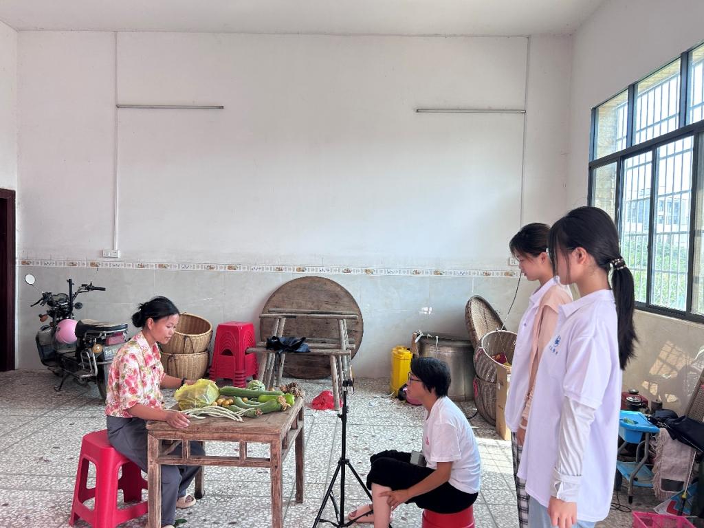 在当地村庄,一位村民姐姐正通过直播平台售卖自家种植的农家蔬菜、瓜果等农产品,直播间里订单不断,热闹非凡。实践队员们驻足观摩,认真学习直播流程、产品介绍技巧以及与网友互动的方式。大家一边记录直播中的关键环节,一边向村民姐姐请教如何结合乡村特色突出产品优势,希望未来能运用新媒体知识,帮助更多农户拓宽销售渠道,为乡村振兴贡献青春力量。