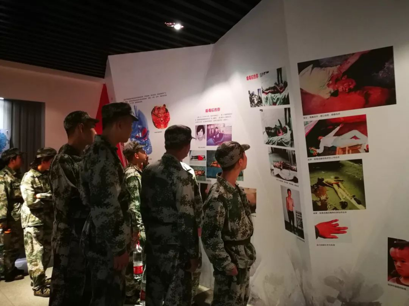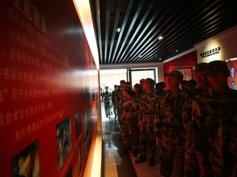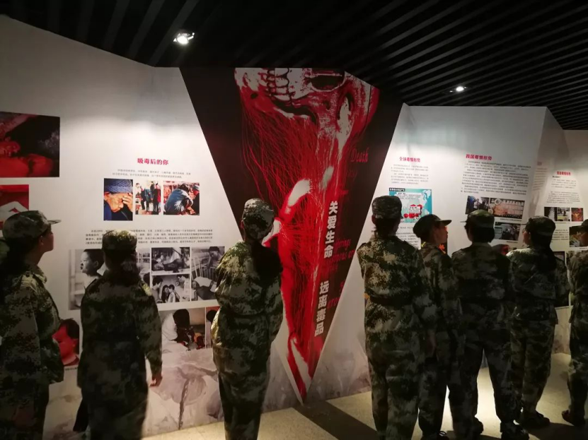 法制安全教育讲座结束后教官们带着小萌新们来到了我们学校的教育基地。小萌新们了解毒品的危害并远离毒品,为打赢新时代禁毒人民战争贡献力量。