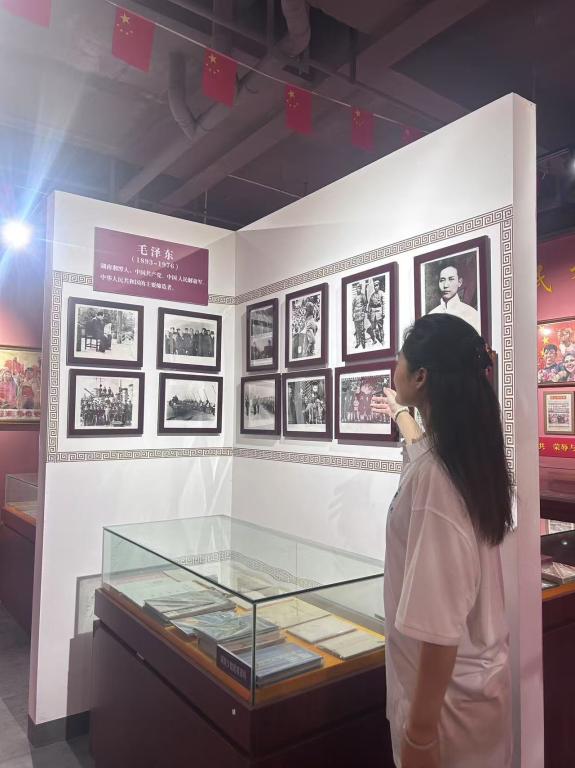 纪念馆内,泛黄的史料、珍贵的实物、生动的场景复原,无声诉说着革命先辈的奋斗历程。志愿者们一边认真聆听讲解,一边反复调试镜头角度:有的蹲在展柜前拍摄革命文物细节,有的举着相机记录讲解员讲述的动人故事,还有的对着历史地图梳理红色脉络。“这段关于当地群众支援前线的故事一定要拍进去,这正是‘军民同心’的生动体现,对现在的乡村治理也很有启发。”一位志愿者在拍摄间隙和队友讨论道。