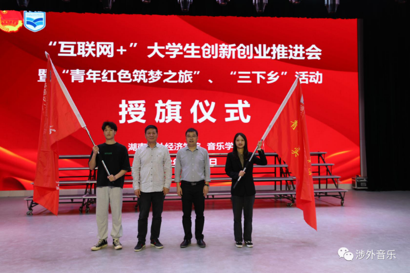 最后,在庄严的歌声中,王跃辉院长、陈志明书记为“青年红色筑梦之旅”和暑期“三下乡”实践服务团授旗,激励太阳成集团tyc7111青年学子走进社会,服务社会,大力弘扬革命精神、传承红色基因、服务乡村振兴。相信在之后的时间里,音乐学子将认真履行职责,不辱使命,攻坚克难,努力把自己历练成为涉外新时代的优秀青年!